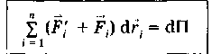 Второй член равенства (*) равен элементарной работе внутренних и внешних консервативных сил, взятой со знаком «минус», т. е. равен элементарному приращению потенциальной энергии dП системы..
