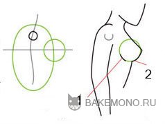 2. Нижняя половина окружности соответствует нижней части груди. Верхняя часть груди рисуется небольшим изгибом, исходящим из соска к шее.