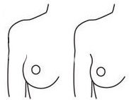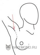 Форма груди начинается в подмышечном изгибе. Она либо выпирает (большой размер груди) из нее либо имеет небольшую впадинку (при маленьком размере груди).