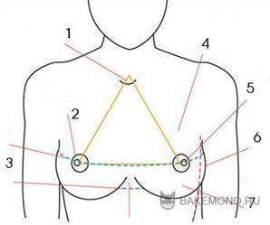 7. 1 / 3 часть объема груди должна быть выше ареолы, а 2 / 3 под ней.