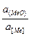 ) уменьшается, а затем понижается с уменьшением активности оксида в шлаке а(МеО) и увеличением активности элемента в металле а[МеО].