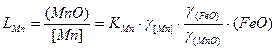 Так как оксиды марганца и железа являются основными оксидами, изменение состава шлака приводит к изменению активности γ(FeO) и γ(MnO) в одном направлении. Следовательно, основность шлака не так резко влияет на величину коэффициента распределения, как в случае кремния.