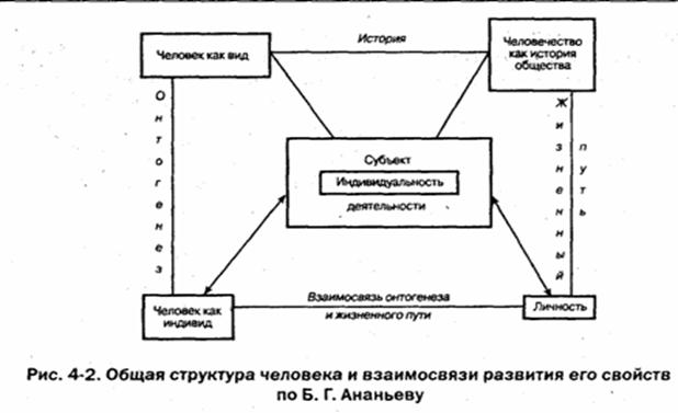 Еще один подход к проблеме биологического и социального последовательно разрабатывался в отечественной психологии Б. Г. Ананьевым и его последователями в рамках концепции индивидуальности. В одной из своих основных работ «Человек как предмет познания» Ананьев так определяет индивидуальность: «Единичный человек как индивидуальность может быть понят лишь как единство и взаимосвязь его свойств как личности и субъекта деятельности, в структуре которых функционируют природные свойства человека как индивида»