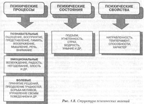 Психические процессы выступают в качестве первичных регуляторов поведения человека. Психические процессы имеют определенное начало, течение и конец, т. е. обладают определенными динамическими характеристиками, к которым прежде всего относят параметры, определяющие длительность и устойчивость психического процесса. На основе психических процессов формируются определенные состояния, происходит формирование знаний, умений и навыков. В свою очередь, психические процессы могут быть разделены на три группы: познавательные, эмоциональные и волевые.
