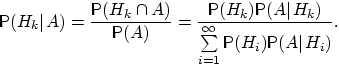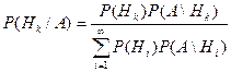 Формула Байеса: Пусть Н1, Н2 …— полная группа событий и A — некоторое событие положительной вероятности. Тогда условная вероятность того, что имело место событие Нk, если в результате эксперимента наблюдалось событие A, может быть вычислена по формуле: