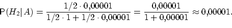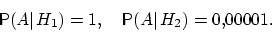 Пример: Два стрелка подбрасывают монетку и выбирают, кто из них стреляет по мишени (одной пулей). Первый стрелок попадает по мишени с вероятностью 1, второй стрелок — с вероятностью 0,00001. Можно сделать два предположения об эксперименте: