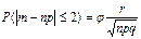 След1: Если в\ть наступления события в каждом отдельном испытании постоянно и отлично от 0 и 1, а число испыт велико, то событие имело место от np на величину непревосходящую r по абсолютной величине, нах по ф-ле: