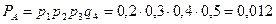 Пример. Последовательно послано 4 радиосигнала. Вер-ти приема каждого из них не зависят от того, приняты ли остальные сигналы, или нет. Вер-ти приема сигналов = соотв-но 0,2, 0,3, 0,4, 0,5. Определить вер-ть приема 3х радиосигналов. Решение: Событие приема 3х сигналов из 4х возможно в 4х случаях: