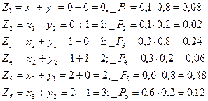 13. Математические операции над дискретными сл\велечинами. Приведите пример построения закона распределения сл\вел Z=X+Y или Z=XY по заданным распределениям X и Y.