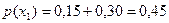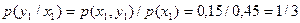 | y1=3 | 0,15 | 0,06 | 0,25 | 0,04 |