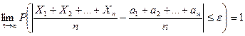 ограничены 1 и той же постоянной, то при неограниченном увеличении числа n ср арифметическая сл\величин сходится по в-ти к средней арифм их м\ожиданий
