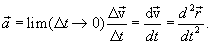 Ускорение, или мгновенное ускорение равно пределу среднего ускорения при стремлении промежутка времени