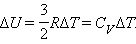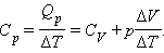 Коэффициент пропорциональности между ΔU и ΔT равен теплоемкости CV при постоянном давлении: