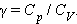 Отношение теплоемкостей в процессах с постоянным давлением и постоянным объемом играет важную роль в термодинамике. Оно обозначается греческой буквой γ.