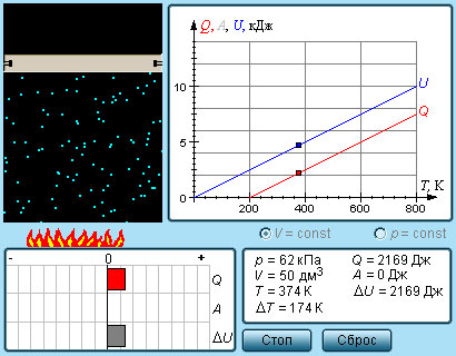 Изменение ΔU внутренней энергии газа прямо пропорционально изменению ΔT его температуры.