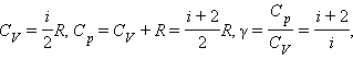 Таким образом, соотношение, выражающее связь между молярными теплоемкостями Cp и CV, имеет вид (формула Майера):