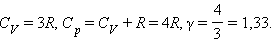 Для газа, состоящего из одноатомных молекул (i = 3)