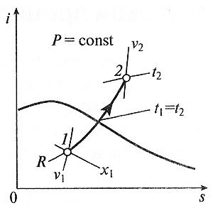 Изобарный процесс в p, v-, T, s- и i, s-координатах (диаграммах)