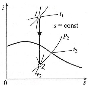Адиабатный процесс, происходящий без внутреннего трения в рабочем теле, называется изоэнтропийным. В T, s -диаграмме он изображается вертикальной линией.