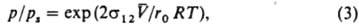 где p1 и p2 - давления в жидкости 1 и соседней фазе 2 (газе или жидкости), s12 - поверхностное (межфазное) натяжение.