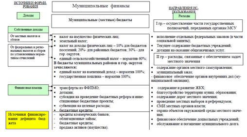 Муниципальные финансы согласно действующему федеральному законодательству включают в себя средства местного бюджета, муниципальных внебюджетных фондов, государственные и муниципальные ценные бумаги, принадлежащие органам местного самоуправления, и другие денежные средства, находящиеся в муниципальной собственности.