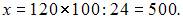 Если в 2011 году в России в авиакатастрофах погибло 120 человек, что составляет 24 % от общего количества всех погибших, то во всем мире за этот год в результате авиакатастроф погибло _____ человек. (Ответ запишите в виде целого числа.)