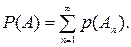 Аксиома 4. (расширенная аксиома сложения). Если событие А равносильно наступлению хотя бы одного из попарно несовместных событий А1, А2, …, то есть,