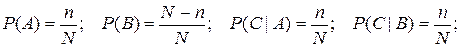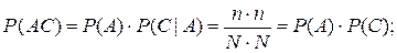то есть, согласно формуле (1.26) в данном случае события А и С независимы.