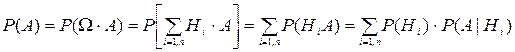 Доказательство. Воспользуемся тем, что Hi (гипотезы) попарно несовместны (следовательно, несовместны и Hi∙А), и что их сумма есть достоверное событие