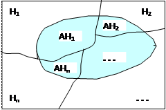 Эта схема имеет место всегда, когда можно говорить о разбиении всего пространства событий на несколько, вообще говоря, разнородных областей, в каждой из которых имеется некоторая совокупность элементарных событий АНi, благоприятствующих появлению события А (рис. 1.11.2, где область, соответствующая событию А, заштрихована).