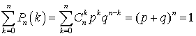 .Здесь мы воспользовались биномом Ньютона и соотношением p + q = 1. Таким образом, формула для