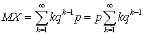 представляет собой геометрическую прогрессию, с первым членом p и знаменателем q. Изучим теперь свойства этого распределения. С ростом k вероятности убывают. Используя формулу для суммы членов геометрической прогрессии, можем записать: