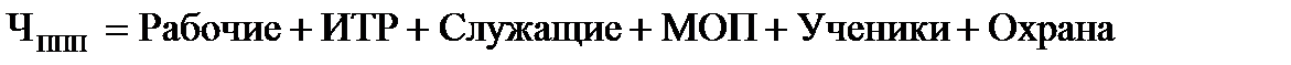 Все работники предприятия подразделяются на промышленно-производственный персонал (ППП) – лиц, непосредственно занятых в производстве или его обслуживании, и непромышленный персонал – лиц, не имеющих отношения к выпуску продукции (производству). В расчетах численности и производительности труда учитывают только ППП. Общая численность ППП складывается из следующих категорий работников: