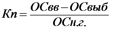 Обобщаяющую оценку движения ОС дают коэффициенты обновления (Ко), выбытия (Кв) и прироста ОС (Кп):