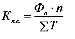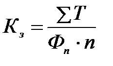 3. Коэффициент загрузки оборудования (Кз) является обратной величиной коэффициента пропускной способности и определяется отношением трудоемкости производственной программы (∑Т) к плановому фонду времени работы (Фп) всего оборудования (n):