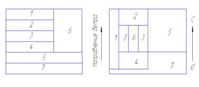· расположение цехов и хозяйств с учетом направления преобладающих ветров и сторон света, чтобы обеспечить благоприятные условия для проветривания и естественного освещения.