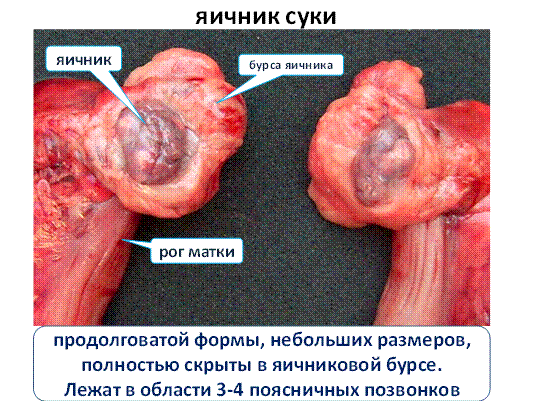 Ø бурса яичника (вентрально, между брыжейкой яйцевода и собственной связкой яичника)