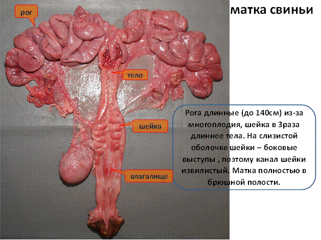 свинья - узкое, длиной 10-12см. Без границ переходит в шейку матки.
