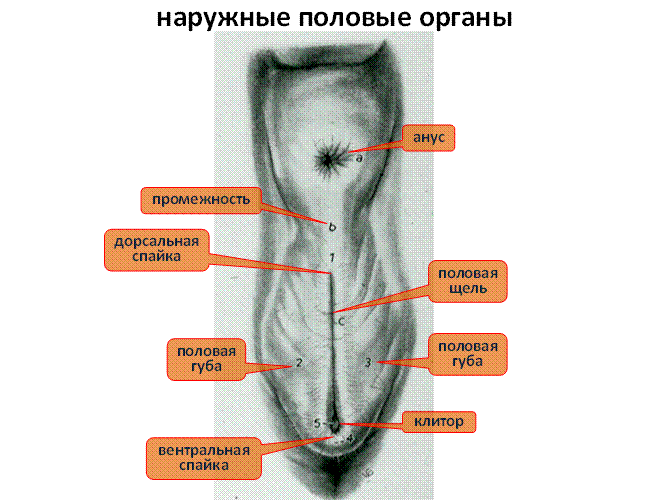 ü смыкаясь образуют спайки: дорсальную и вентральную (лежит клитор)