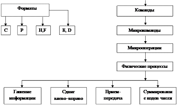 Таким образом, получается, что для выполнения любой микрооперации, код которой находится в микрокоманде, требуется одинаковое время – машинный такт, длительность которого, в свою очередь, совпадает со временем фронта tф тех триггеров, на которых построены узлы, блоки и устройства данной ЭВМ. Следовательно, машинная команда, являясь программой из микрокоманд, фактически является последовательностью «физических процессов» обработки электронной информации на элементах и узлах электронно-вычислительной машины. Зная количество микрокоманд, можно для любой машинной команды определить фактическое время ее выполнения, посчитав количество машинных тактов для цепочек физических процессов. Для внутри машинного представления всех типов «данных» и «управляющей информации» используются двоичные коды, состоящие из физических аналогов «0» и «1» побайтно собранные в строго формализованные структуры.