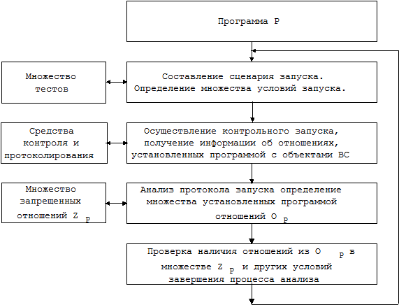 Существующие методы, используемые для анализа безопасности ПО; можно разделить на две категории: контрольно-испытательные и логико-аналитические. В первой категории задача решается в пространстве отношений. В такой постановке для доказательства того, что исследуемая программа содержит РПС, необходимо доказать, что рабочее пространство программы содержит отношение нелегитимного доступа, т. е. представить зафиксированный факт осуществления нелегитимного доступа к объектам ВС. Эти методы наиболее распространены, т. к. они не требуют формального анализа, позволяют использовать имеющиеся технические и программные средства и быстро ведут к созданию готовых методик. В качестве примера можно привести методику пробного запуска в специальной среде с фиксацией попыток нарушения систем защиты и разграничения доступа. Кроме того, эти методы используют специальные программы-сторожа, предупреждающие пользователя о подозрительных событиях в системе.