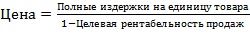 где Р – цена; АТC – средние (удельные) полные затраты; PTCАТC – норматив рентабельности к затратам (profitto cost).