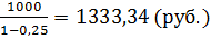 Допустим, что издержки на производство составляют 1000 руб., а целевая рентабельность продаж задана руководством компании на уровне 25%. Тогда желаемая цена продажи составит: