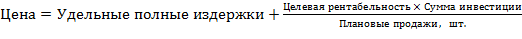 3. Ценообразование на основе целевой рентабельности инвестиций применяется при установлении цен на новые товары и услуги, особенно при небольшом ассортименте или возможности четко разнести используемые фирмой активы между различными продуктами. При этом расчет цены производится следующим образом: