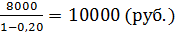 10000×(1–0,20) = 8000 руб.