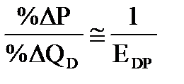 – если EDP=1, то спрос имеет единичную эластичность, т.е. при изменении цены на 1% объем спроса изменяется также на 1%;