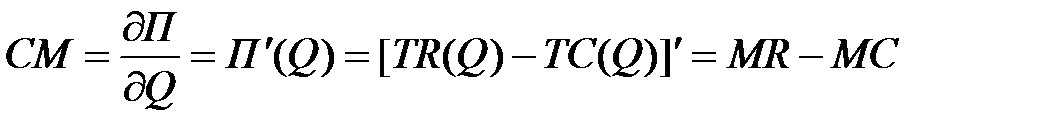 По аналогии с используемыми нами ранее другими предельными категориями предельная прибыль представляет собой изменение общей прибыли от продаж товара при производстве и реализации дополнительного количества этого товара:
