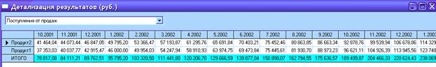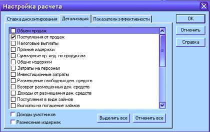 Во вкладке «Настройка расчета» в разделе «Детализация» выбираем «Поступления от продаж», чтобы затем определить, в каком месяце проекта поступления от продаж Продукта 1 превысят поступления от продаж Продукта 2: