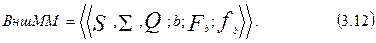 Внешняя (Внш) ММ предназначена для отображения внешней связности типа «вход-выход» и не содержит никаких деталей ИС. Она строится на основе описания множеств входных S и выходных S сигналов, а также множества Q внешних параметров. Множество В преобразующих элементов состоит из одного элемента b, отображение fb, описывающее поведение ПЭ и связывающего входы системы с ее выходами задается формально, так как внутренний механизм преобразования входных сигналов в выходные сигналы не принимается во внимание. В результате формируется макромодель системы: