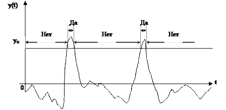 Ответ на первый вопрос может быть простой: отсчеты следует производить непрерывно. В этом случае пропуск сигнала из-за дискретности отсчетов не возможен. Таким образом, сигнал y(t) должен поступать на решающее устройство непрерывно и сравниваться с порогом yп (см. рис. 5.1).